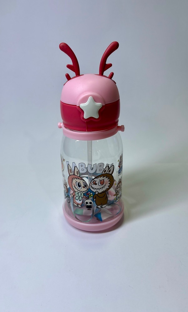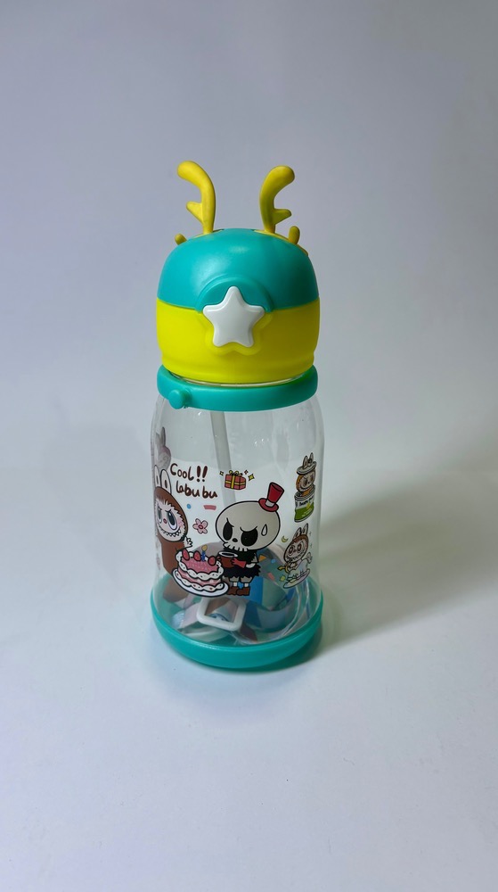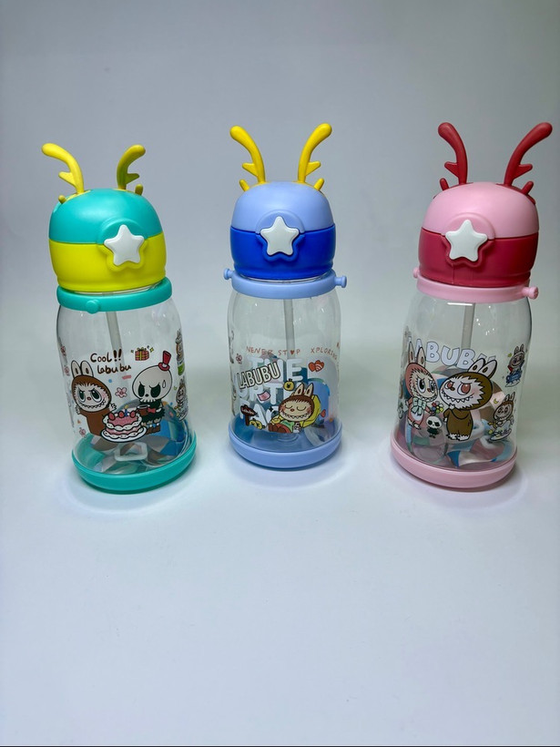 قمقمه کودک شاخدار طرح Labubu مدل نی‌دار در سه رنگ