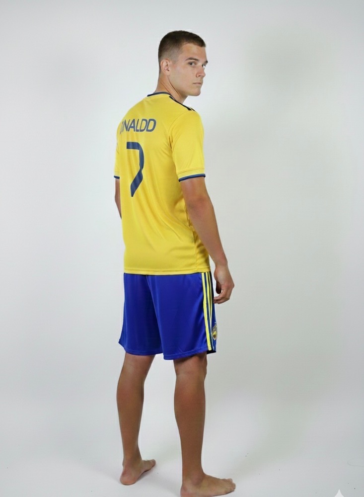 اگر از طرفداران کریستیانو رونالدو هستید، این ست ورزشی انتخابی ایدهآل برای شماست. طراحی حرفهای با رنگ رسمی باشگاه النصر و شماره 7، حس حضور در زمین مسابقه را منتقل میکند. پارچه پلیاستر با کیفیت بالا، سبک و مقاوم بوده و برای استفاده طولانیمدت مناسب است. این لباس هم برای تمرین و هم استفاده روزمره هواداری کاملاً کاربردی است.